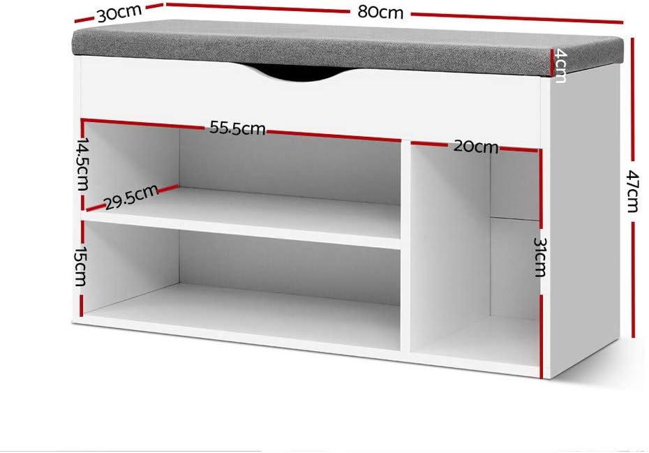 - PADDED SEAT: The shoe cabinet bench also offers a soft and comfortable rest with its 4cm thick cushioned seat.